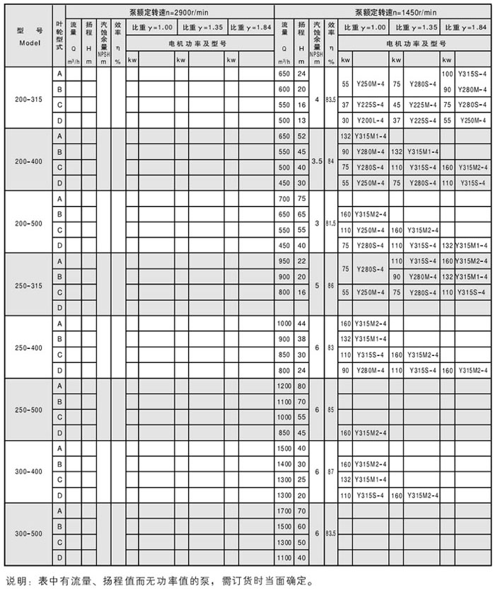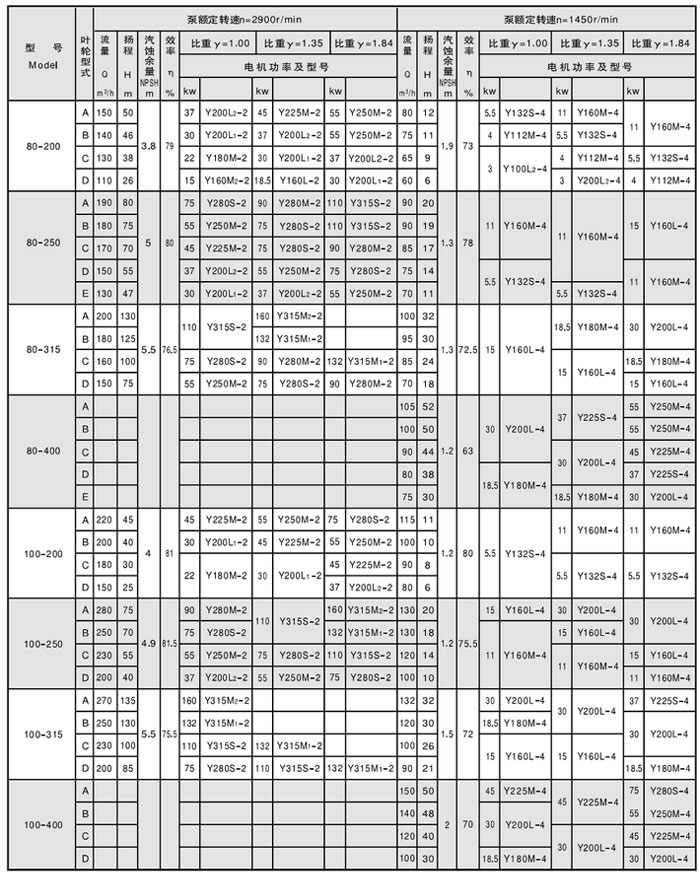 六、CZ型化工泵性能參數表