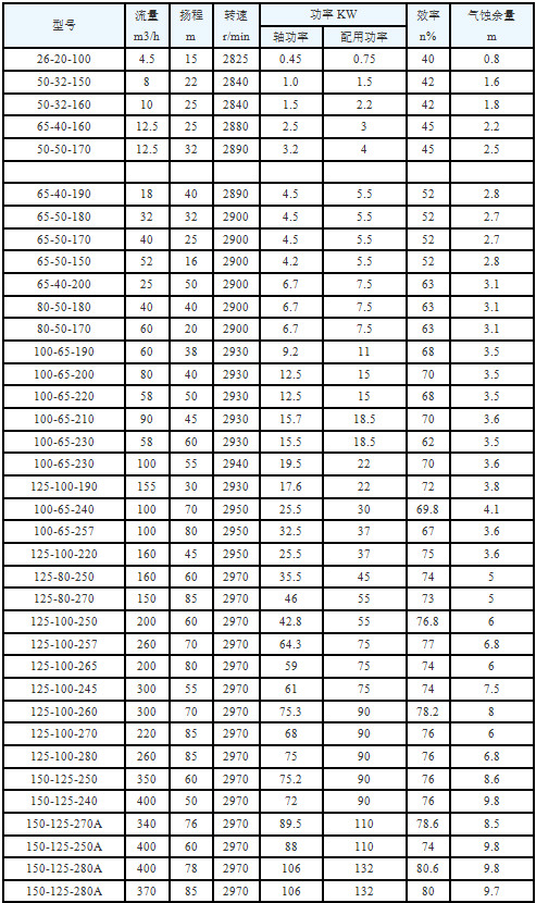 四、WRY熱油泵規(guī)格性能參數(shù)表